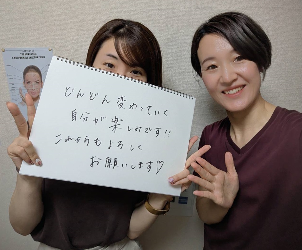 顔が長くなったような気がして、写真を撮るのも嫌になっていました。他県からでも来る価値があると聞いて予約しました。カウンセリングが丁寧で、私の悩みをしっかり聞いてくれて安心できました。施術は本当に痛みがなく、リラックスして受けられました。フェイスラインがすっきりして、鏡を見るのが楽しみになりました。