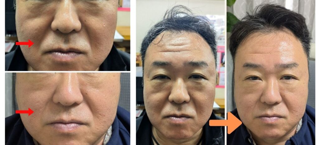 左はケア前、右はエクソソームを取り入れたケアを継続した結果…
